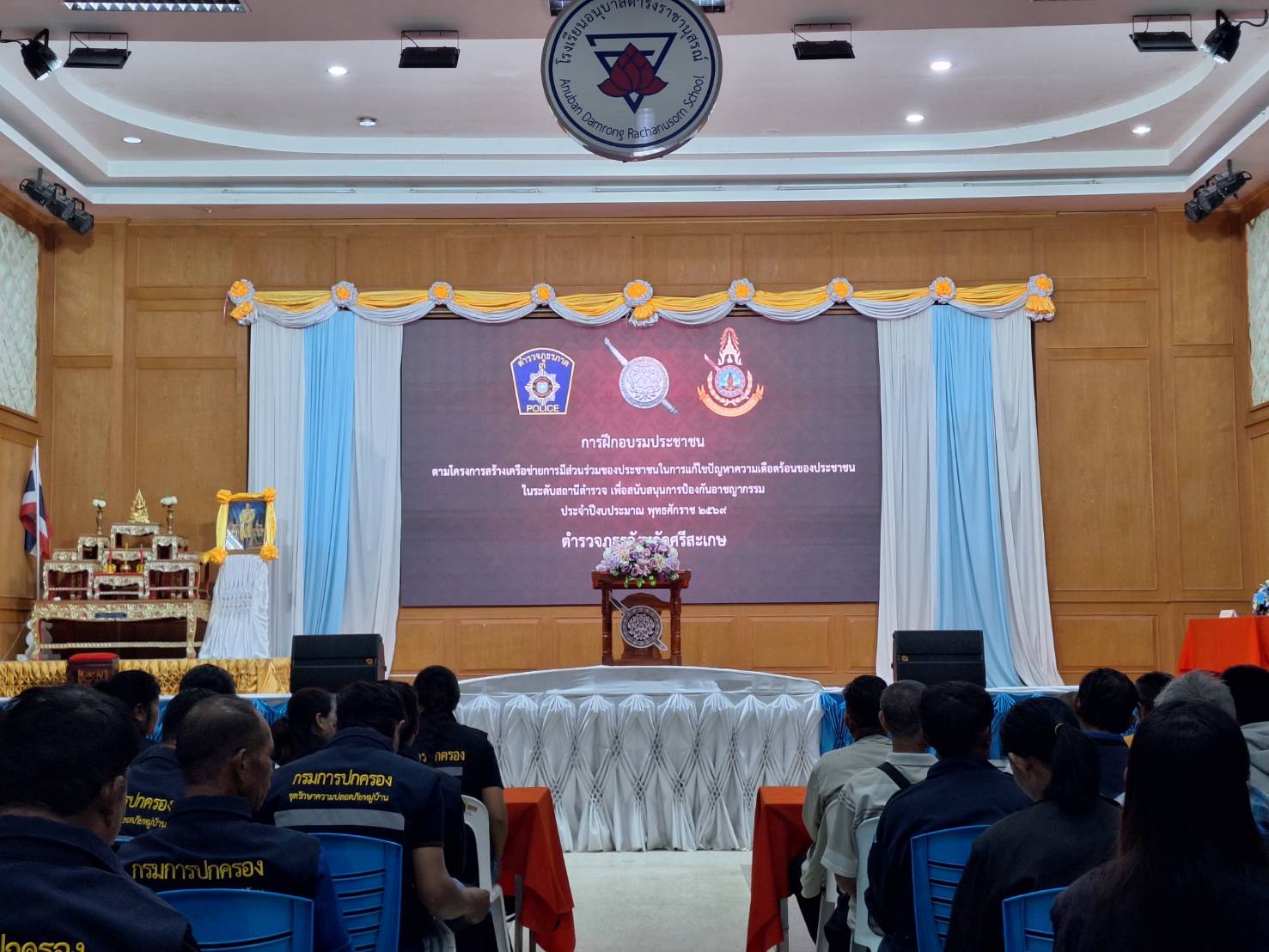 วันที่ 12 ก.พ. 2569 เวลา 08.30 น. พ.ต.อ.ภูฤทธิ์ เหล่าฤทธิ์ ผกก.สภ.ศรีรัตนะ นำข้าราชการตำรวจชุด ชมส. และภาคีเครือข่ายฯ สภ.ศรีรัตนะ จำนวน 50 คน เข้าร่วมฝึกอบรมโครงการสร้างเครือข่ายการมีส่วนร่วมของประชาชนในการแก้ไขปัญหาความเดือดร้อนของประชาชน ในระดับสถานีตำรวจ เพื่อสนับสนุนการป้องกันอาชญากรรม ของ ตำรวจภูธรจังหวัดศรีสะเกษ ประจำปีงบประมาณ พ.ศ. 2569 โดยมี พ.ต.อ.รัชพล เสริมศรัณย์ รอง ผบก.ภ.จว.ศรีสะเกษ เป็นประธานพิธีเปิดการฝึกอบรมฯ ณ หอประชุมโรงเรียนอนุบาลดำรงราชานุสรณ์ อ.กันทรลักษ์ จว.ศรีสะเกษ