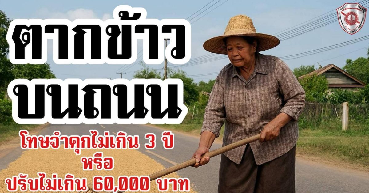 🌾🚨 ตากข้าวบนถนน… โทษหนัก! คุก 3 ปี ปรับ 6 หมื่นบาท 🚫💸