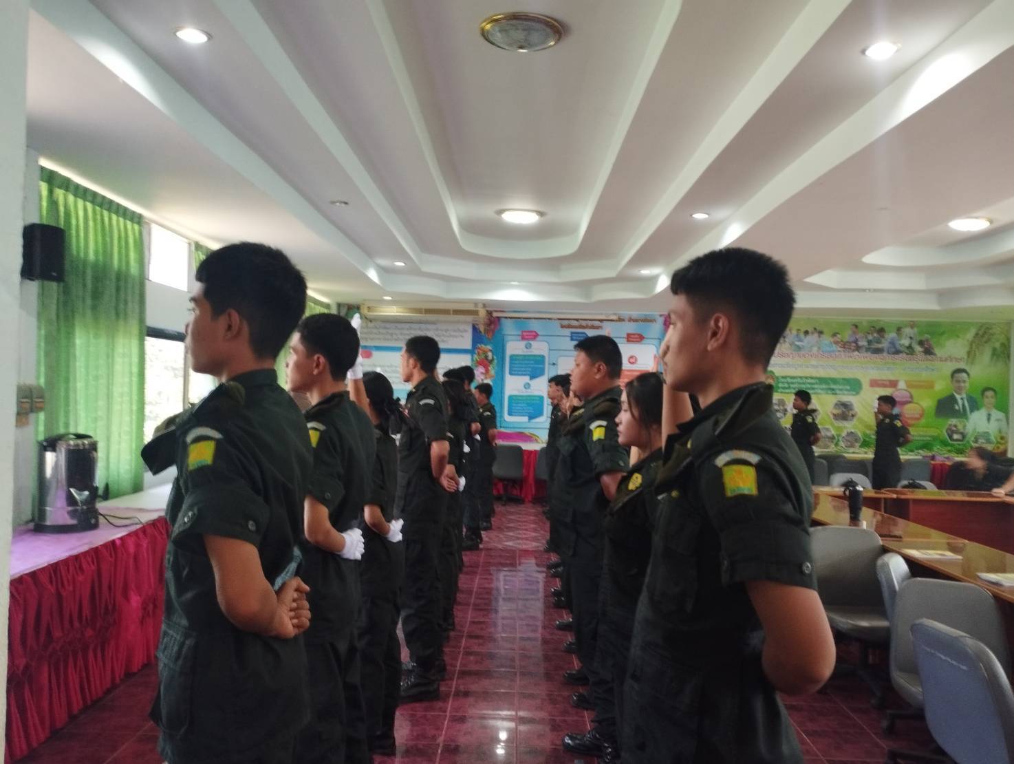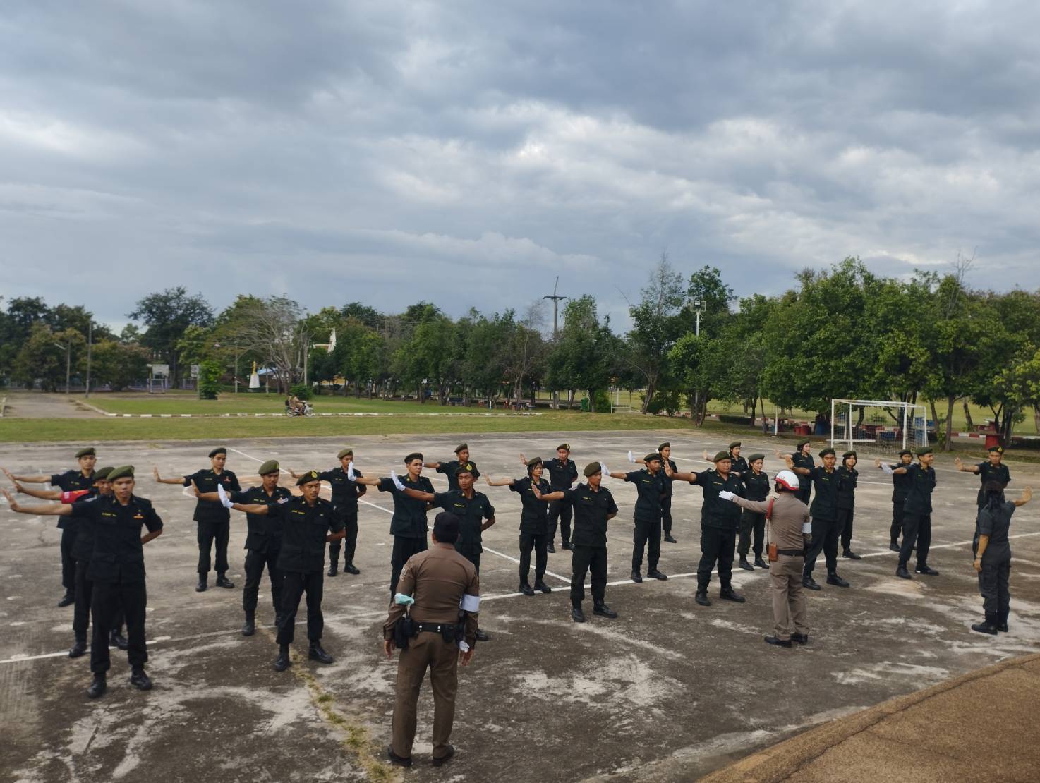วันที่ 13 พฤศจิกายน 2567 เวลา 15.00 น. ร.ต.อ.เกรียงศักดิ์ พรหมรินทร์ รอง สวป.สภ.ศรีรัตนะ, ร.ต.ท.ชาญชัย ทับทะมาศ รอง. สว(จร.)สภ.ศรีรัตนะ และ จ.ส.ต.เฉลิมพล ยะลา ผบ.หมู่ (จร.)สภ.ศรีรัตนะ ร่วมเป็นวิทยากรให้ความรู้เกี่ยวกับสัญญาณมือจราจร และการอำนวยความสะดวกการจราจรกับนักศึกษาวิชาทหาร ณ โรงเรียนศรีแก้วพิทยาคม ต.ศรีแก้ว อ.ศรีรัตนะ จำนวน 24 นาย ตามโครงการฝึกอบรมยุวจราจรฯ