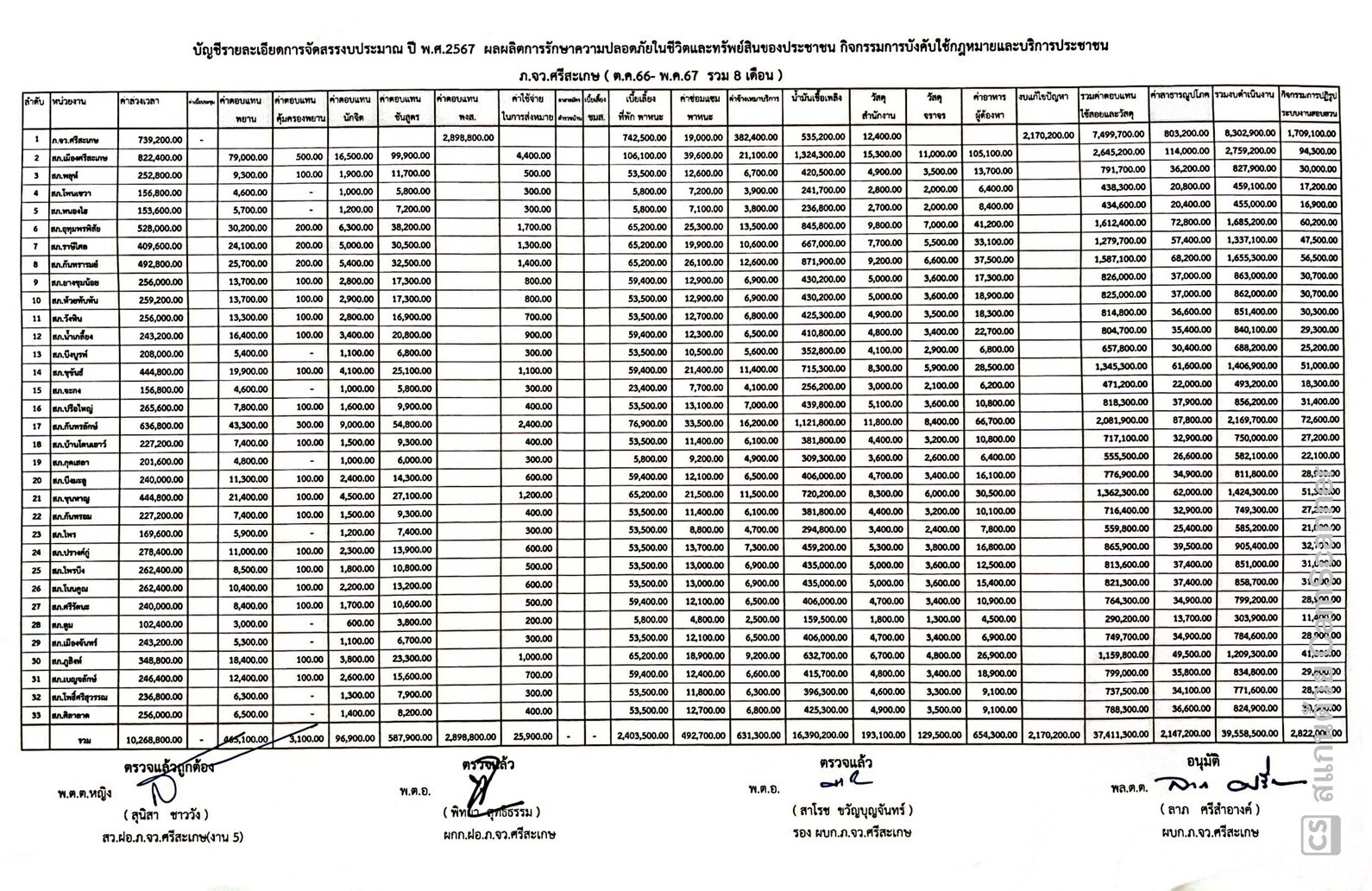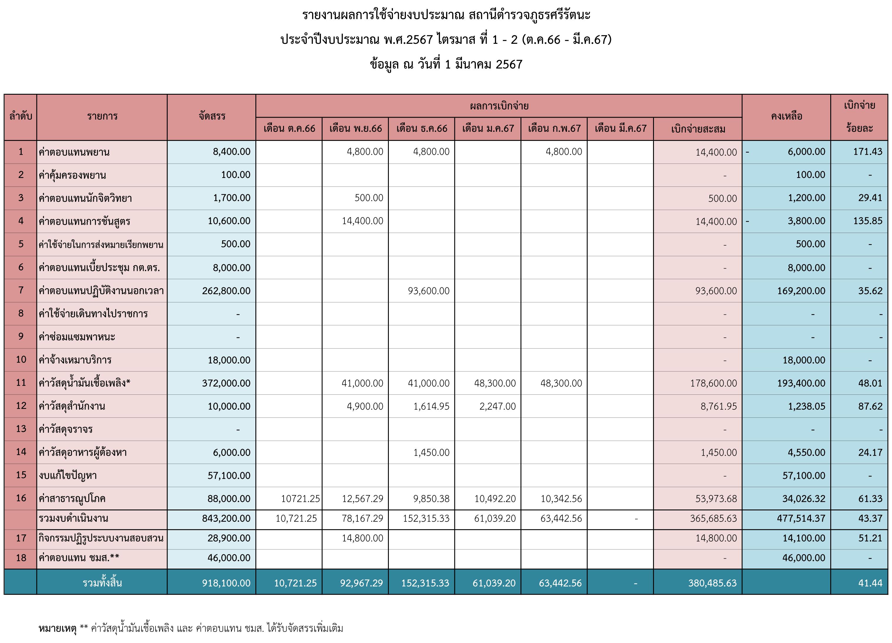 O12 แผนการใช้จ่ายงบประมาณประจำปีและรายงานผลการใช้จ่ายงบประมาณประจำปี 26 กุมภาพันธ์ 2567 โดย admin / ITA 2566,ITA 2567 Views: 112 แผนการใช้จ่ายงบประมาณประจำปีและรายงานผลการใช้จ่ายงบประมาณประจำปี แผนการใช้จ่ายงบประมาณสถานีตำรวจประจำปี (รอบ 8 เดือน) PDF EXCEL รายงานผลการใช้จ่ายงบประมาณประจำปี PDF EXCEL ข้อูล ณ วันที่ 1 มี.ค.67 บัญชีการจัดสรรงบประมาณรายจ่ายประจำปี 2567 FacebookFacebookXXLINELine